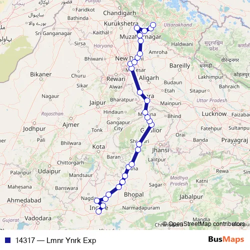 The first stop of the 14317 rail route is Lakshmibai Ngr and the last stop is YOG Nagari Rishikesh. 14317 (Lmnr Ynrk Exp) is operational during on weekends.