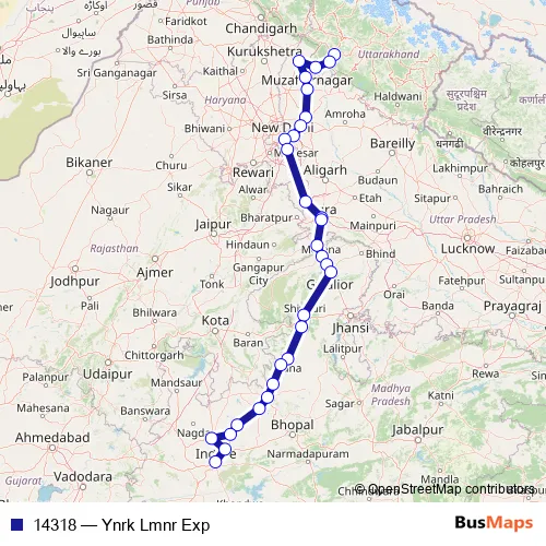 The first stop of the 14318 rail route is YOG Nagari Rishikesh and the last stop is Lakshmibai Ngr. 14318 (Ynrk Lmnr Exp) is operational during everyday.