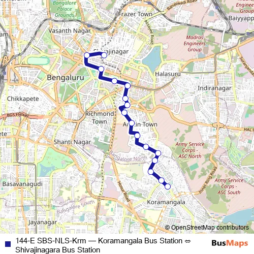 Click here to view the nearest 144-E SBS-NLS-Krm - Koramangala Bus Station ⇔ Shivajinagara Bus Station bus stop.