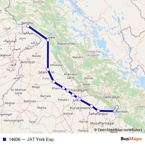 The first stop of the 14606 rail route is Jammutavi and the last stop is YOG Nagari Rishikesh. 14606 (JAT Ynrk Exp) is operational during everyday.
