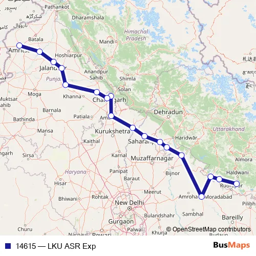 The first stop of the 14615 rail route is Lalkua Jn. and the last stop is Amritsar. 14615 (LKU ASR Exp) is operational during everyday.