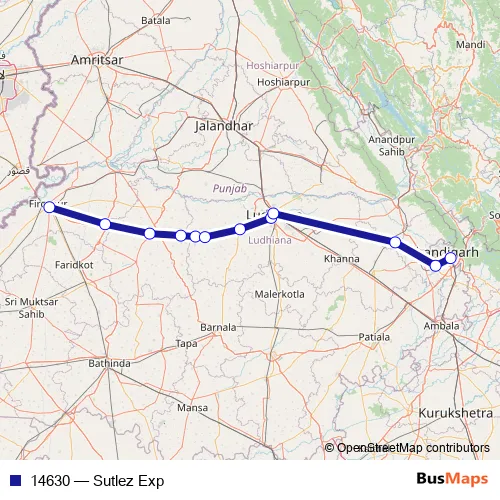 The first stop of the 14630 rail route is Firozpur Cant and the last stop is Chandigarh. 14630 (Sutlez Exp) is operational during everyday.