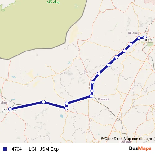 The first stop of the 14704 rail route is Lalgarh Jn and the last stop is Jaisalmer. 14704 (LGH JSM Exp) is operational during everyday.