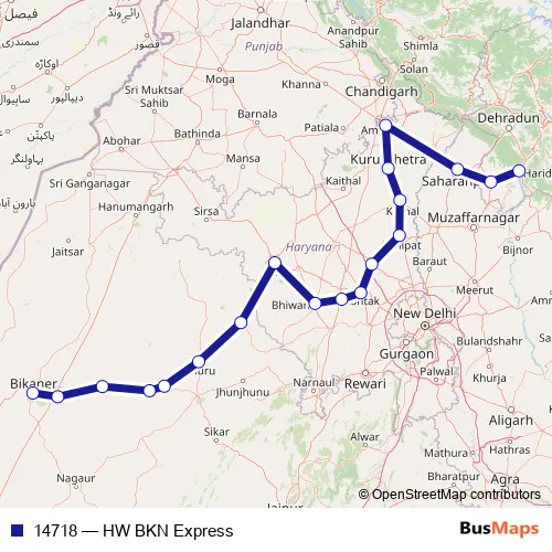 The first stop of the 14718 rail route is Haridwar Jn and the last stop is Bikaner Jn. 14718 (HW BKN Express) is operational during everyday.
