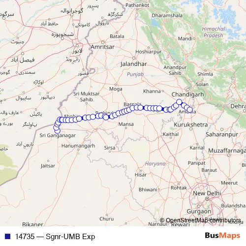 The first stop of the 14735 rail route is Shri Ganganagar and the last stop is Ambala Cant Jn. 14735 (Sgnr-UMB Exp) is operational during everyday.