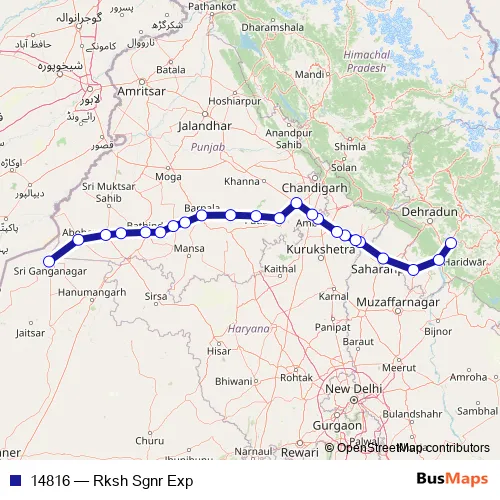 The first stop of the 14816 rail route is Rishikesh and the last stop is Shri Ganganagar. 14816 (Rksh Sgnr Exp) is operational during everyday.