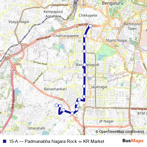 Click here to view the nearest 15-A - Padmanabha Nagara Rock ⇔ KR Market bus stop.