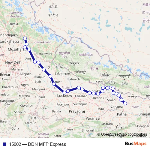 The first stop of the 15002 rail route is Dehradoon and the last stop is Muzaffarpur Jn. 15002 (DDN MFP Express) is operational during everyday.
