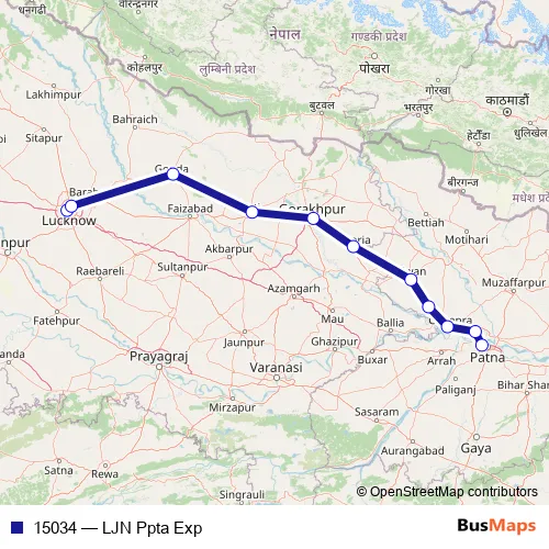 The first stop of the 15034 rail route is Lucknow and the last stop is Patliputra. 15034 (LJN Ppta Exp) is operational during everyday.