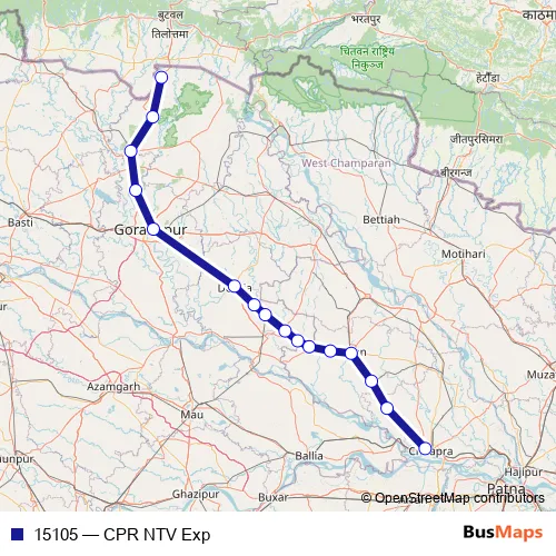 The first stop of the 15105 rail route is Chhapra and the last stop is Nautanwa. 15105 (CPR NTV Exp) is operational during everyday.