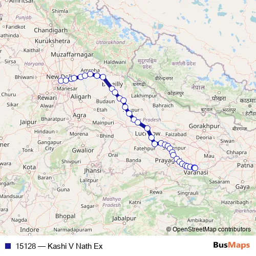 The first stop of the 15128 rail route is NEW Delhi and the last stop is Banaras. 15128 (Kashi V Nath Ex) is operational during everyday.
