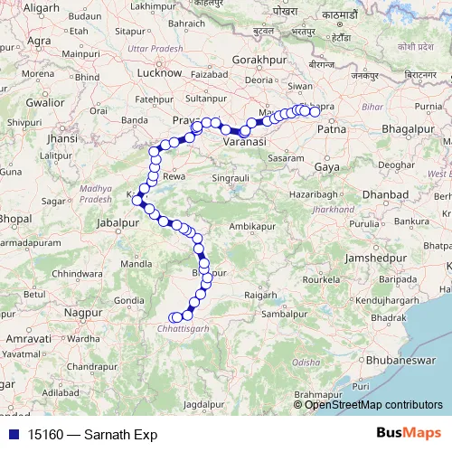 The first stop of the 15160 rail route is Durg and the last stop is Chhapra. 15160 (Sarnath Exp) is operational during everyday.