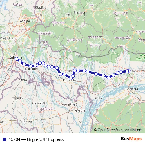 The first stop of the 15704 rail route is Bongaigaon and the last stop is NEW Jalpaiguri. 15704 (Bngn-NJP Express) is operational during everyday.