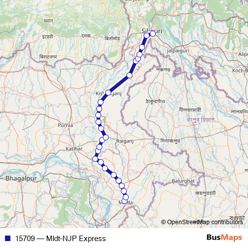Rail 15709 - Mldt-NJP Express in Malda: Stops & Timetable