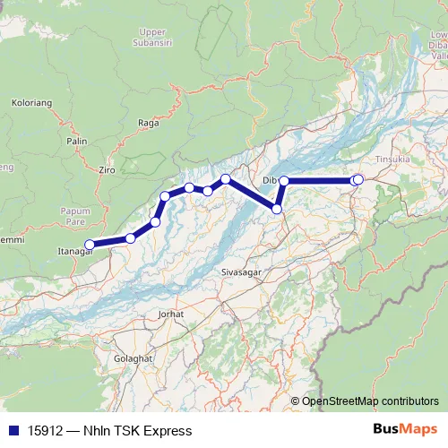 The first stop of the 15912 rail route is Naharlagun and the last stop is Tinsukia Jn.. 15912 (Nhln TSK Express) is operational during everyday.