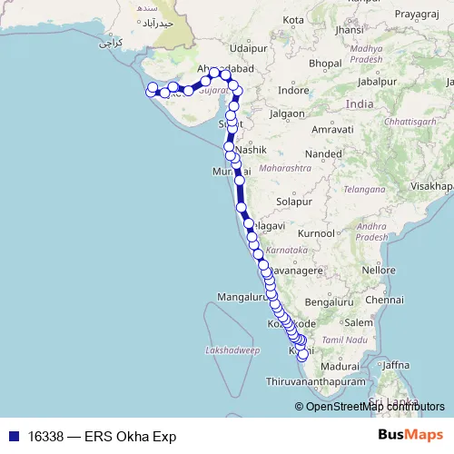 The first stop of the 16338 rail route is Ernakulam Jn and the last stop is Okha. 16338 (ERS Okha Exp) is operational during everyday.