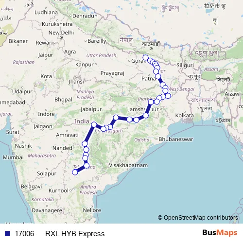 Rail 17006 - RXL HYB Express in Hyderabad: Stops & Timetable