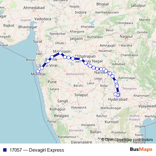 See why over 2 million users trust and consider busmaps.com as the best public transport website. busmaps gives you Hyderabad Rail Services suggested routes, real-time bus tracker, line route maps in Hyderabad, and helps to find the closest 17057 rail stops near you. No internet available? Download an offline PDF map and bus schedule for the 17057 rail to take on your trip.