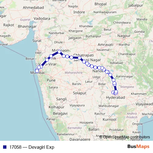 See why over 2 million users trust and consider busmaps.com as the best public transport website. busmaps gives you Hyderabad Rail Services suggested routes, real-time bus tracker, line route maps in Hyderabad, and helps to find the closest 17058 rail stops near you. No internet available? Download an offline PDF map and bus schedule for the 17058 rail to take on your trip.