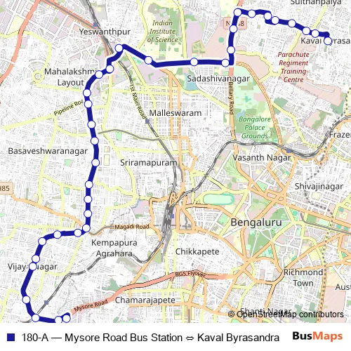 Click here to view the nearest 180-A - Mysore Road Bus Station ⇔ Kaval Byrasandra bus stop.