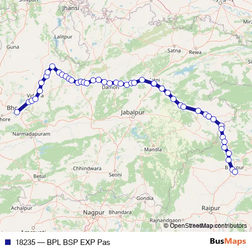 The first stop of the 18235 rail route is Bhopal Jn. and the last stop is Bilaspur Jn.. 18235 (BPL BSP EXP Pas) is operational during everyday.