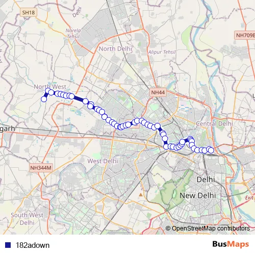 Bus 182adown in New Delhi: Stops & Timetable