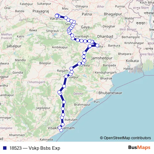The first stop of the 18523 rail route is Visakhapatnam and the last stop is Banaras. 18523 (Vskp Bsbs Exp) is operational during everyday.