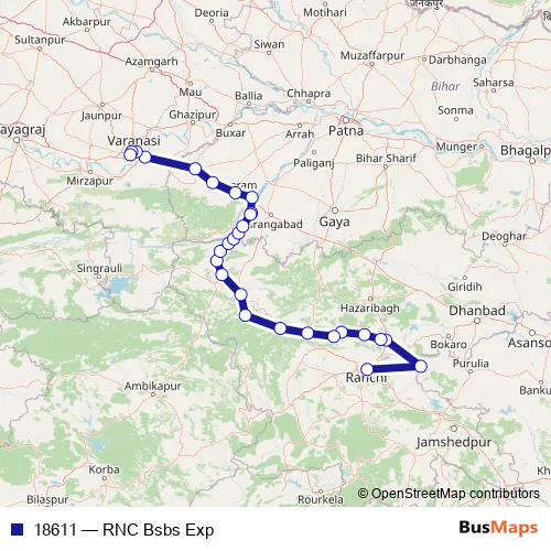 The first stop of the 18611 rail route is Ranchi and the last stop is Banaras. 18611 (RNC Bsbs Exp) is operational during everyday.