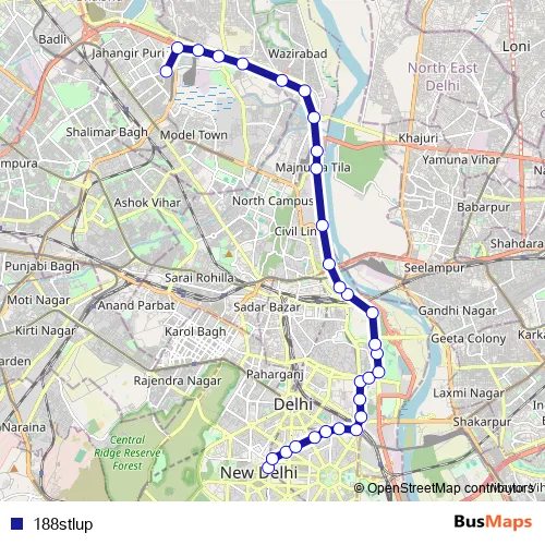 The first stop of the 188stlup bus route is Central Secretariat Metro Station and the last stop is Majlis Park Dmrc Depot. 188stlup is operational during everyday.