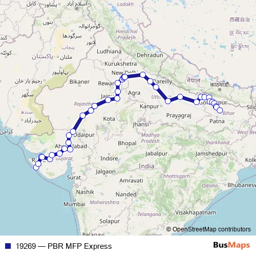 The first stop of the 19269 rail route is Porbandar and the last stop is Muzaffarpur Jn. 19269 (PBR MFP Express) is operational during everyday.