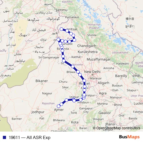 The first stop of the 19611 rail route is Ajmer Jn and the last stop is Amritsar. 19611 (AII ASR Exp) is operational during everyday.