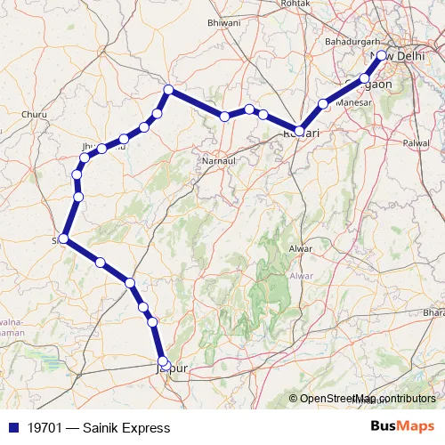 The first stop of the 19701 rail route is Jaipur Jn. and the last stop is Delhi Cantt. 19701 (Sainik Express) is operational during everyday.