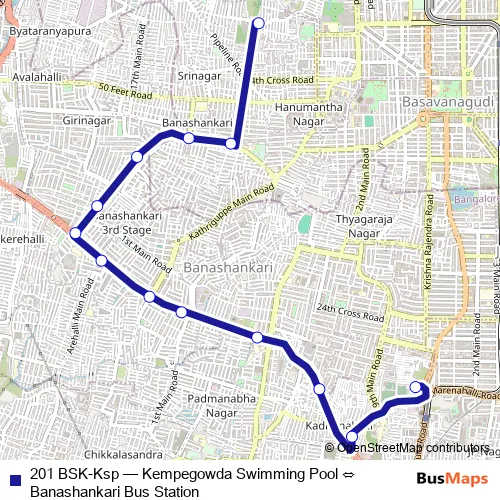 See why over 2 million users trust and consider busmaps.com as the best public transport website. busmaps gives you Bengaluru Buses suggested routes, real-time bus tracker, line route maps in Bengaluru, and helps to find the closest 201 BSK-Ksp bus stops near you. No internet available? Download an offline PDF map and bus schedule for the 201 BSK-Ksp bus to take on your trip.