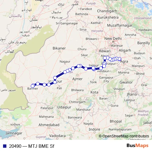 The first stop of the 20490 rail route is Mathura Jn. and the last stop is Barmer. 20490 (MTJ BME Sf) is operational during on weekends.