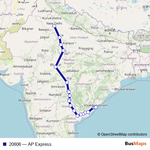 The first stop of the 20806 rail route is NEW Delhi and the last stop is Visakhapatnam. 20806 (AP Express) is operational during everyday.