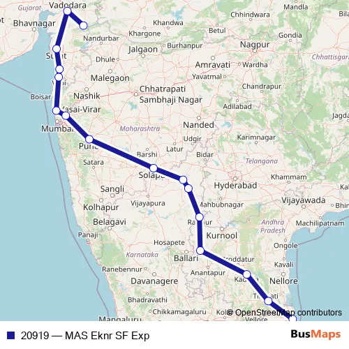 Rail 20919 - MAS Eknr SF Exp in Valsad: Stops & Timetable