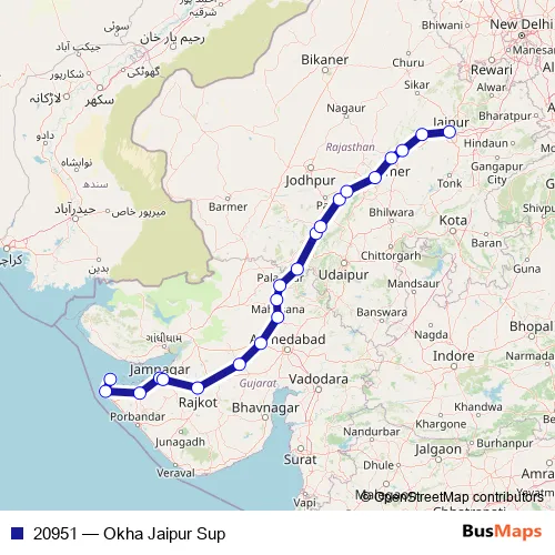 Click here to view the nearest 20951 - Okha Jaipur Sup rail stop.