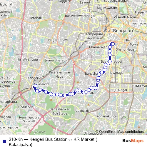 Bus 210-Kn - Kengeri Bus Station ⇔ KR Market (Kalasipalya) in Bengaluru: Stops & Timetable