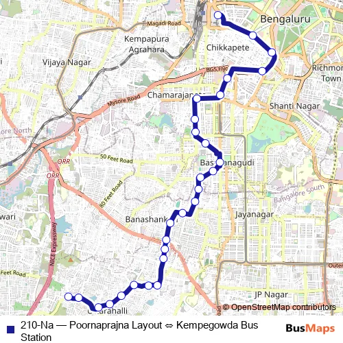 See why over 2 million users trust and consider busmaps.com as the best public transport website. busmaps gives you Bengaluru Buses suggested routes, real-time bus tracker, line route maps in Bengaluru, and helps to find the closest 210-Na bus stops near you. No internet available? Download an offline PDF map and bus schedule for the 210-Na bus to take on your trip.