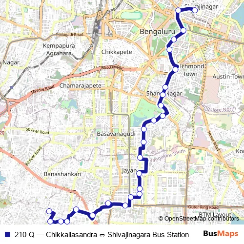 Bus 210-Q - Chikkallasandra ⇔ Shivajinagara Bus Station: Full Schedule in Bengaluru