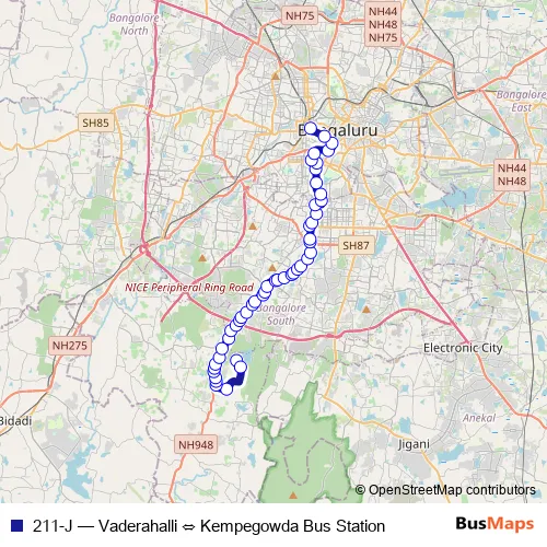 Bus 211-J - Vaderahalli ⇔ Kempegowda Bus Station: Full Schedule in Bengaluru