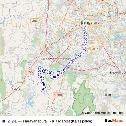 See why over 2 million users trust and consider busmaps.com as the best public transport website. busmaps gives you Bengaluru Buses suggested routes, real-time bus tracker, line route maps in Bengaluru, and helps to find the closest 212-B bus stops near you. No internet available? Download an offline PDF map and bus schedule for the 212-B bus to take on your trip.