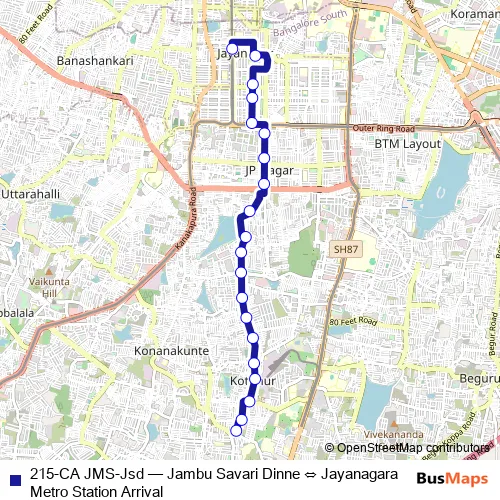 215-CA JMS-Jsd Bus - Jambu Savari Dinne ⇔ Jayanagara Metro Station Arrival