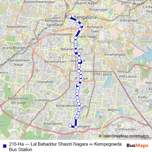 Bus 215-Ha - Lal Bahaddur Shastri Nagara ⇔ Kempegowda Bus Station: Full Schedule in Bengaluru