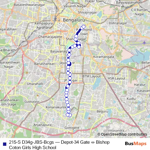 See why over 2 million users trust and consider busmaps.com as the best public transport website. busmaps gives you Bengaluru Buses suggested routes, real-time bus tracker, line route maps in Bengaluru, and helps to find the closest 215-S D34g-JBS-Bcgs bus stops near you. No internet available? Download an offline PDF map and bus schedule for the 215-S D34g-JBS-Bcgs bus to take on your trip.