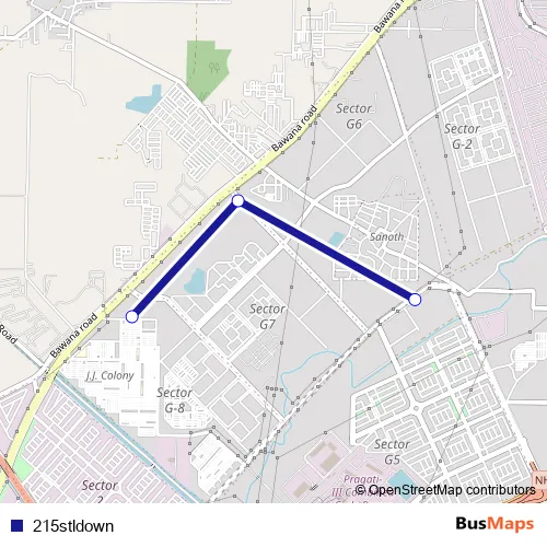 The first stop of the 215stldown bus route is Bawana Sec 5 Cluster Depot and the last stop is Bawana JJ Colony. 215stldown is operational during everyday.
