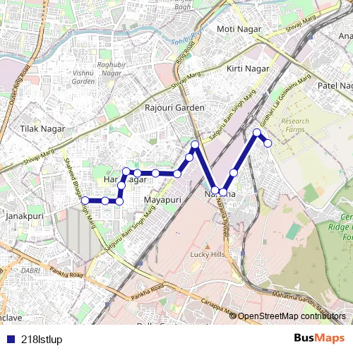 The first stop of the 218lstlup bus route is Inder Puri (Krishi Kunj) and the last stop is Hari Nagar Depot. 218lstlup is operational during everyday.