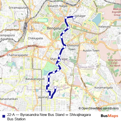 Bus 22-A - Byrasandra New Bus Stand ⇔ Shivajinagara Bus Station in Bengaluru: Stops & Timetable
