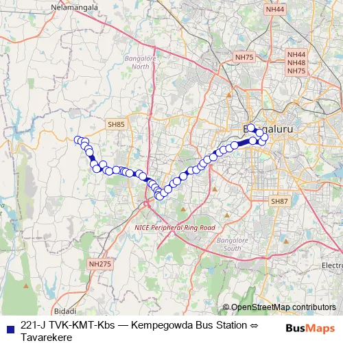 See why over 2 million users trust and consider busmaps.com as the best public transport website. busmaps gives you Bengaluru Buses suggested routes, real-time bus tracker, line route maps in Bengaluru, and helps to find the closest 221-J TVK-KMT-Kbs bus stops near you. No internet available? Download an offline PDF map and bus schedule for the 221-J TVK-KMT-Kbs bus to take on your trip.