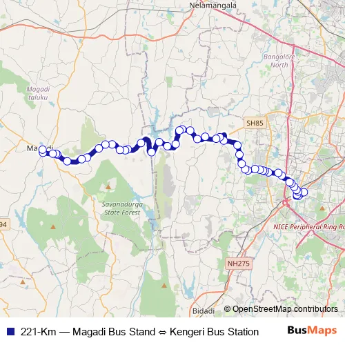 Bus 221-Km - Magadi Bus Stand ⇔ Kengeri Bus Station: Full Schedule in Bengaluru